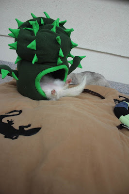 Zbój jako pierwszy zasnął u nas w tak zwany dead sleep czyli martwym snem. Fretki śpią tak, gdy czują się bezpiecznie i ufają właścicielom. Zwierzak jest wtedy totalnie bezwładny i rozluźniony, wręcz "leje" się przez ręce. I można wtedy zrobić z nim wszystko. W razie pożaru przenieść w bezpieczne miejsce i nie próbować budzić :P :)